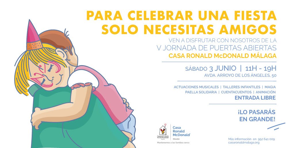 ESPAÑA.- La Casa Ronald McDonald de Málaga celebra el próximo sábado 3 de junio, su “5ª Jornada de Puertas Abiertas”, de 11 a 19 horas, con 8 horas ininterrumpidas amenizadas por actuaciones musicales, talleres, juegos y espectáculos infantiles.